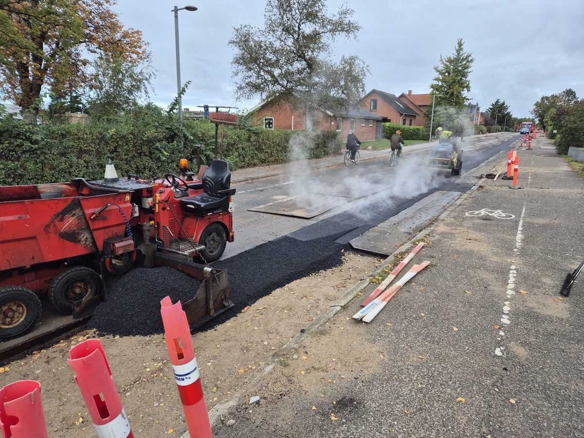 Derfor fræser man nogle cm. af asfalten og giver den et nyt lag fint asfalt så vejen igen blive god og kører på.
