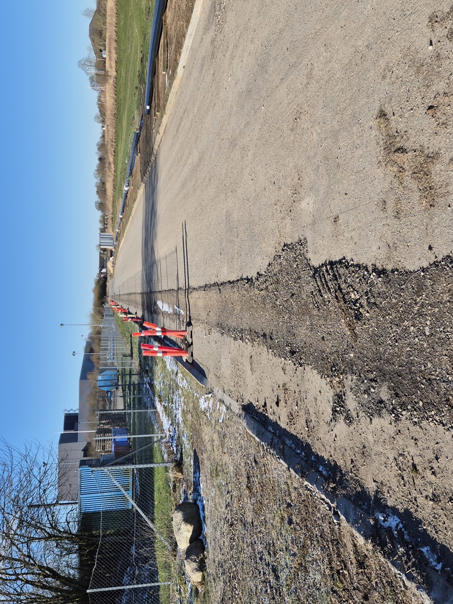 Først har vi fræset asfalten op, og stampet den så man fortsat kan køre på den.